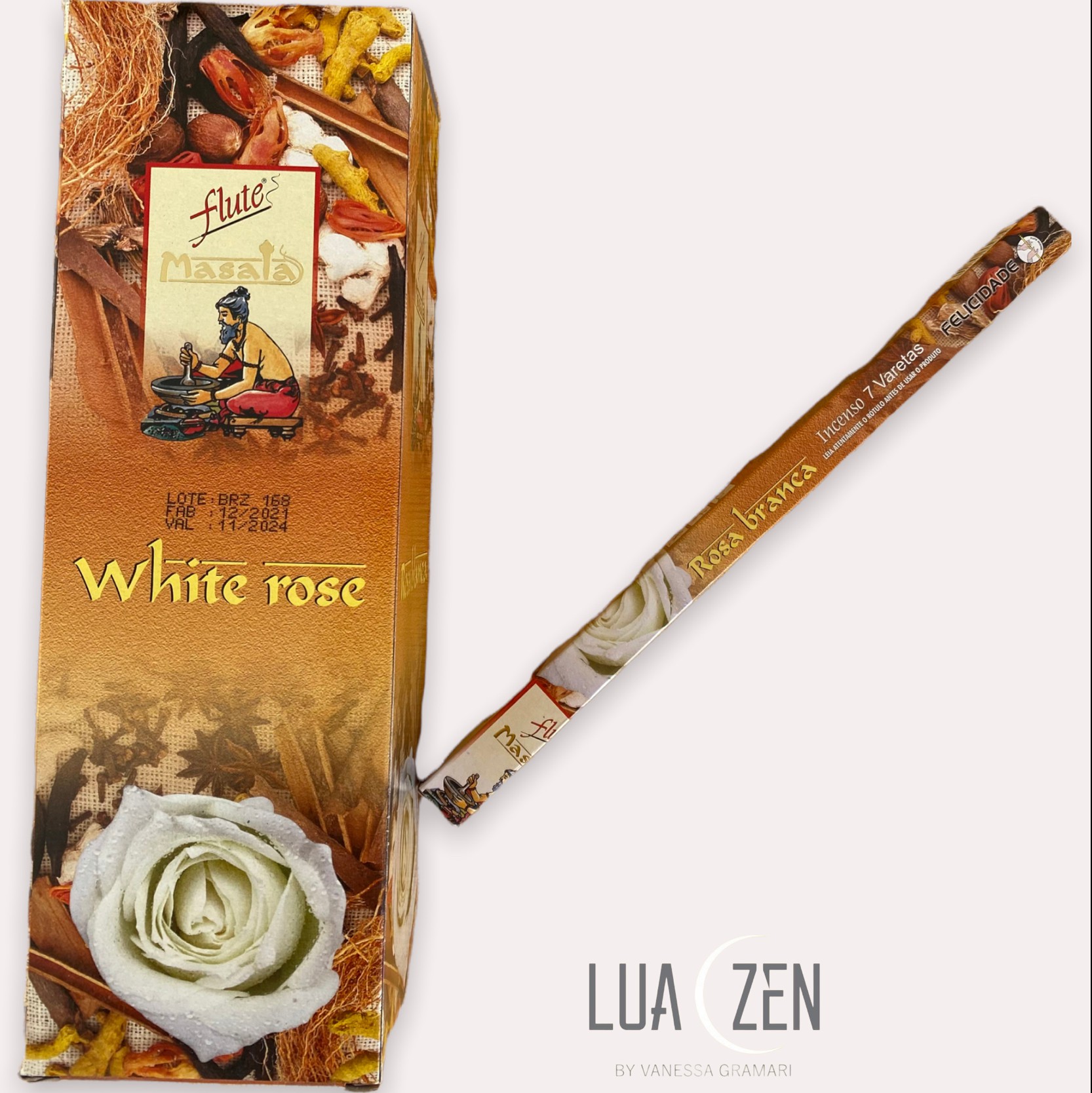 Cada caixinha do incenso Flute Massala contém 7 varetas
